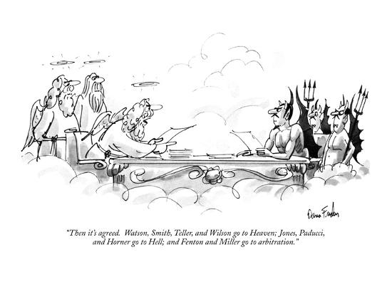 Then It S Agreed Watson Smith Teller And Wilson Go To Heaven Jones New Yorker Cartoon Premium Giclee Print Dana Fradon Art Com